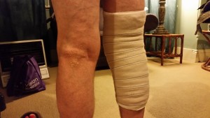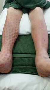 Leg with indentations after mobiderm bandage was removed. Leaving the tissue softer.