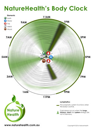 You will notice when you download the NatureHealth body clock, that I have included the lymphatic system. You should be aware that when your body is resting horizontally, so is the lymphatic system at rest.